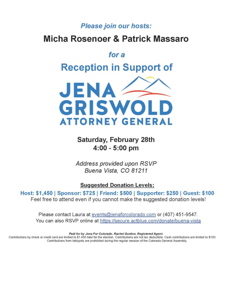 Jena Griswold for Attorney General : Salida Reception